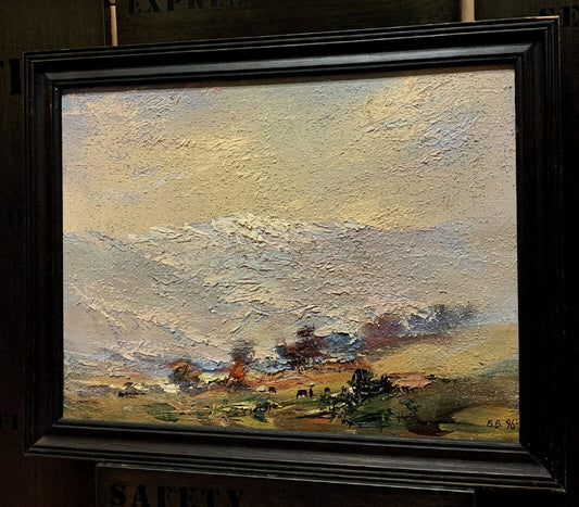 École de l'est Européen (1896) « Vaches en prairie au pied de la montagne» huile sur toile monogrammée GB et datée