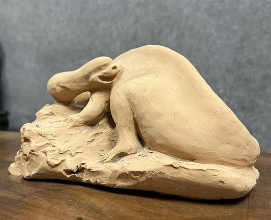 Sculpture moderniste en terre cuite figurant un animal de la préhistoire