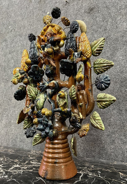 Mexique vers 1900: grand chandelier en terre cuite vernissée attribué à Alfonso Soteno
