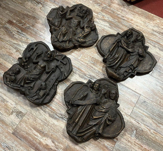 série de 4 panneaux d'un retable de dévotion en plâtre patinés époque XVII eme