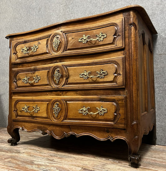 commode Lyonnaise galbée époque Louis XV en noyer massif vers 1750
