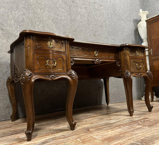 Bureau Provençal galbé de style Louis XV en noyer sculpté vers 1880