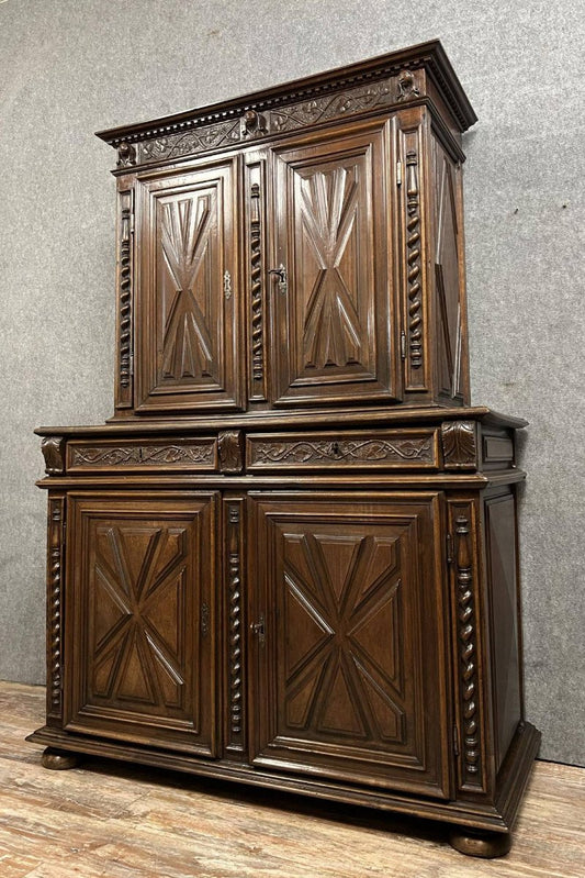 Buffet à retrait sculpté époque Louis XIII en noyer massif vers 1680