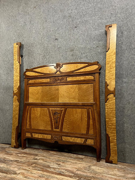 École de Nancy d’après Majorelle : Superbe lit de centre en érable et acajou époque Art Nouveau vers 1900