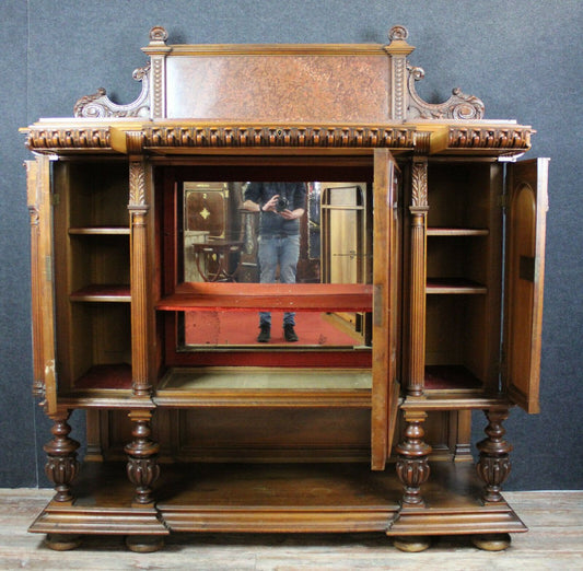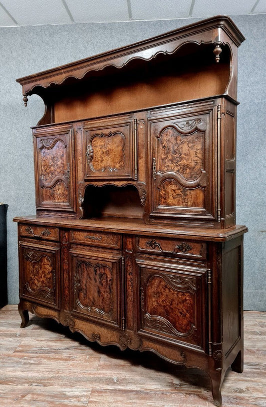 Buffet deux corps Bressan en noyer et loupe vers 1880