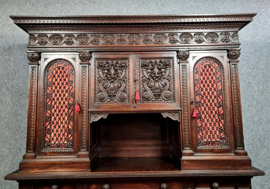 buffet deux corps style Renaissance en noyer massif vers 1850