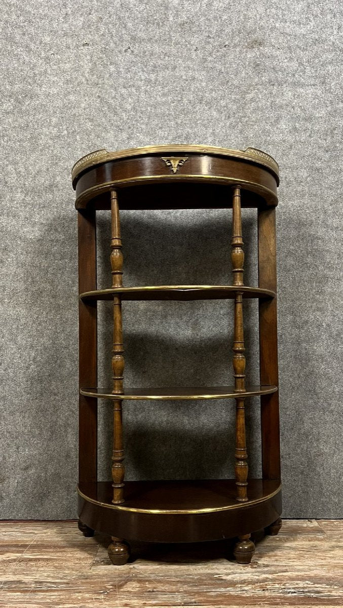 Coiffée d'un joli marbre blanc Carrare et couronnée d'une galerie en laiton doré ajouré